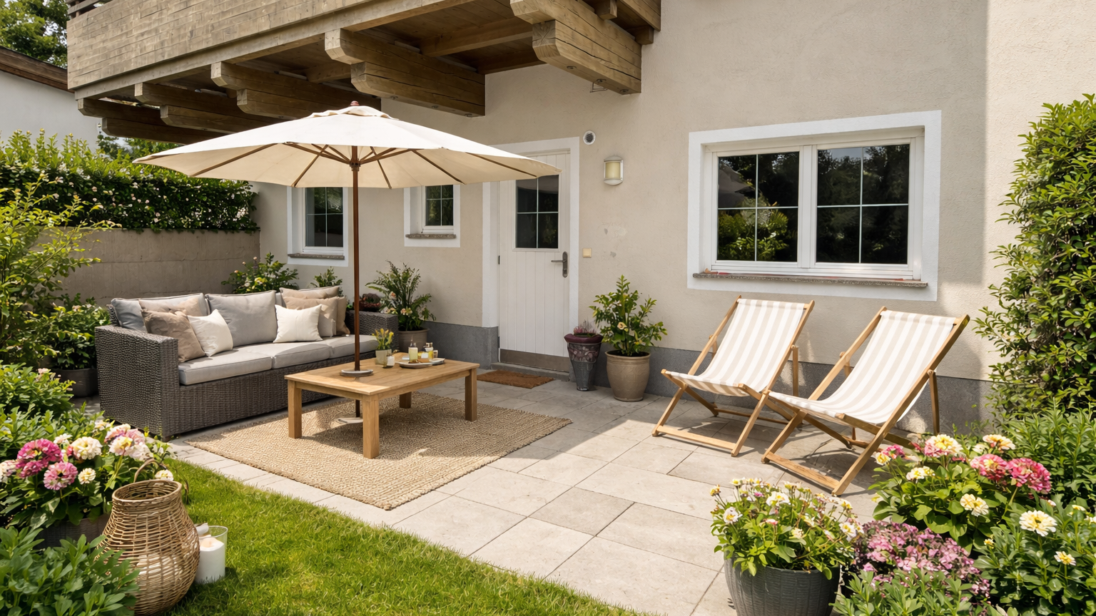 Ein besonderes Highlight ist die eigene Terrasse bzw. der Gartenbereich, der zum Entspannen, Sonnen und Genießen einlädt – ideal für ruhige Momente nach einem aktiven Tag in den Bergen.